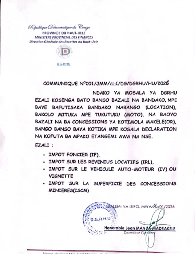 La Direction Générale des Recettes du Haut-Uele (DGRHU) a officiellement annoncé le lancement des opérations…